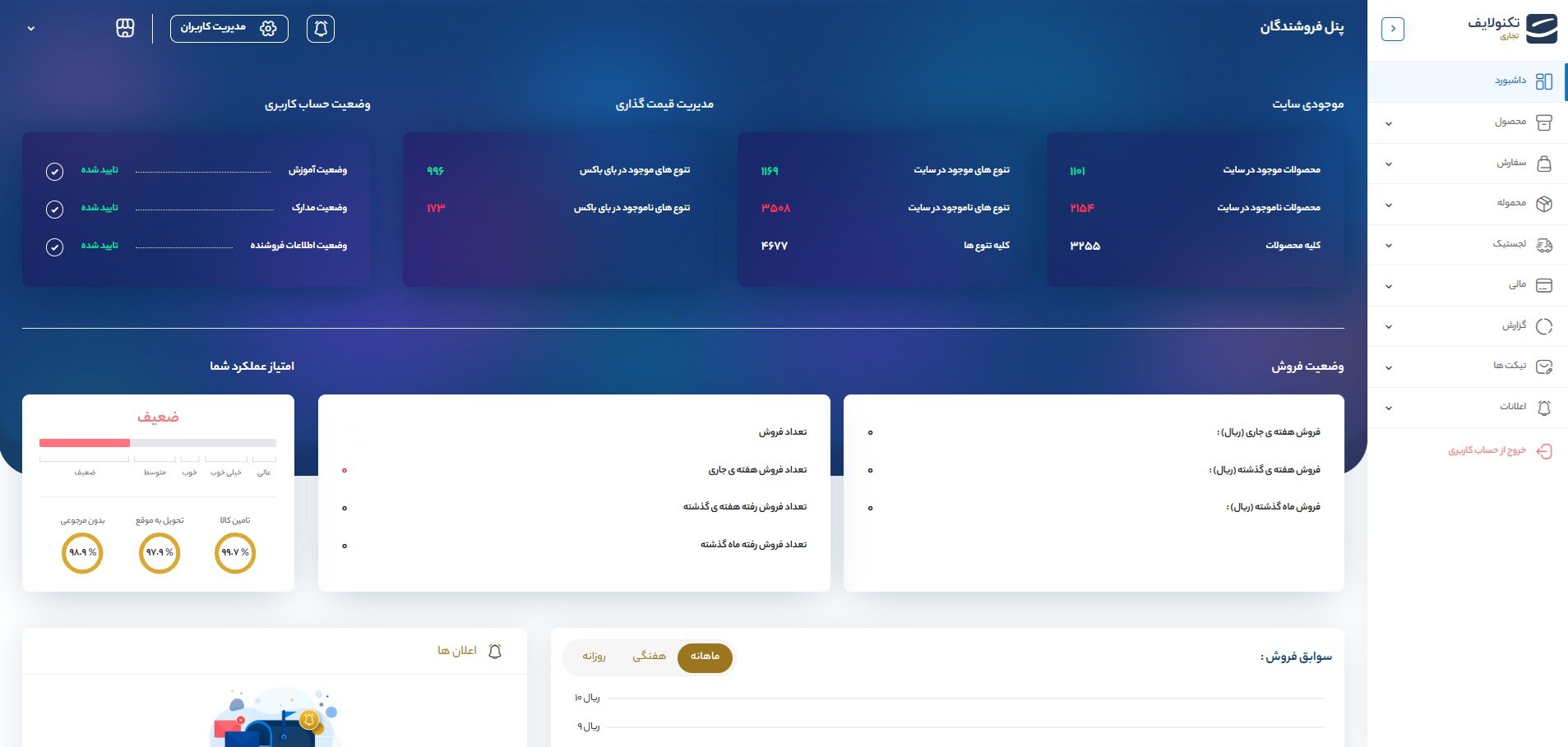ابتدا وارد پنل مدیریتی خود در سایت تکنولایف شوید.
