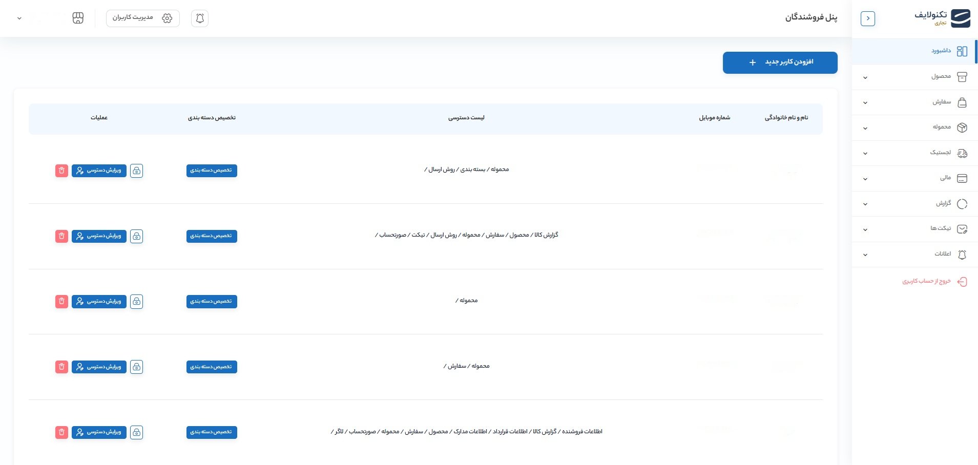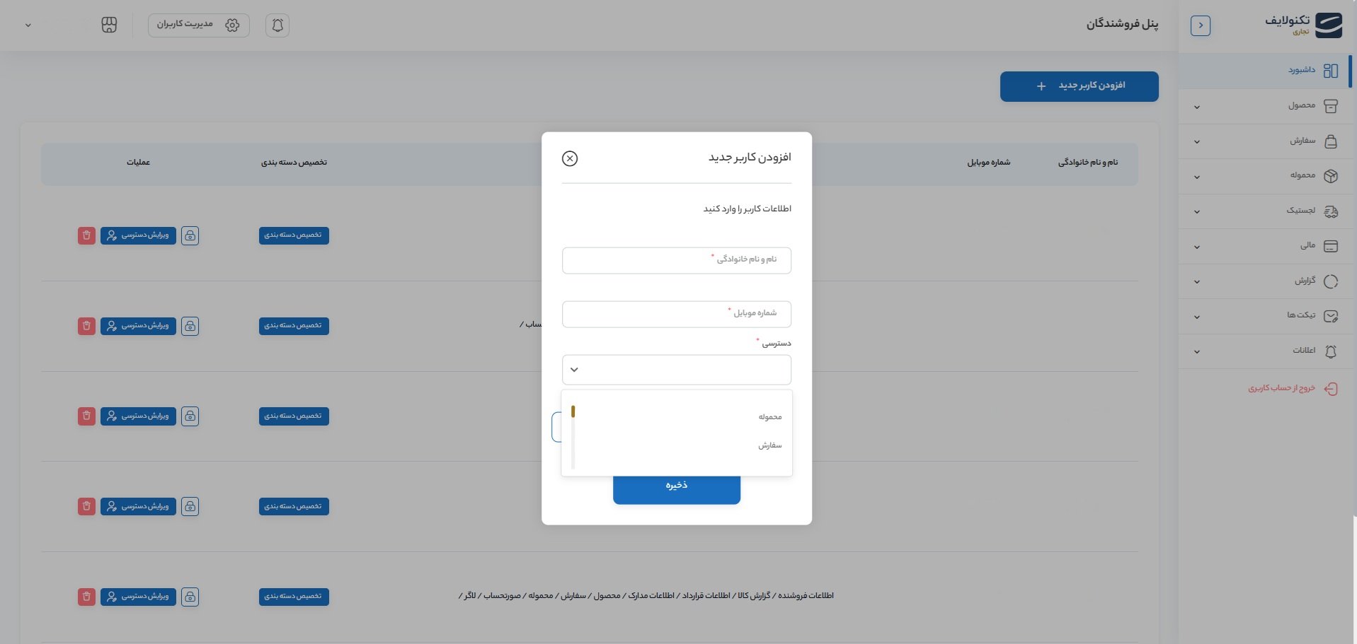 راهنمای معرفی کاربر جدید در پنل کاری تکنولایف