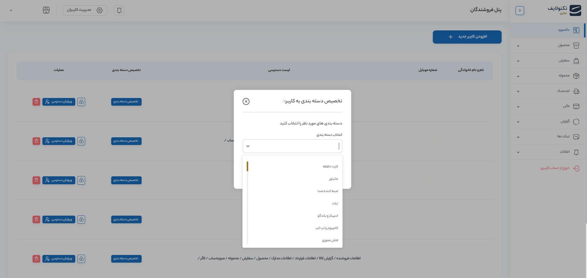 بعد از تعریف کاربر و دسترسی او، می‌توانید یک دسته‌بندی به خصوص از کالاهای پنل خود را به آن کاربر اختصاص دهید.