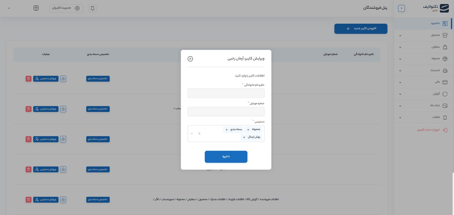 پس از مشخص کردن دسترسی یک کاربر، اگر قصد ایجاد تغییر در دسترسی آن کاربر را دارید؛ کافیست روی گزینه ویرایش دسترسی کلیک و دسترسی را ویرایش کنید.
