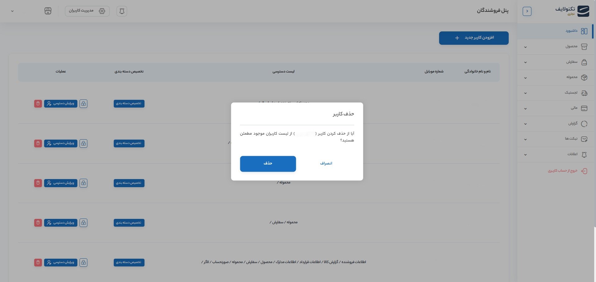 اگر قصد گرفتن دسترسی از یک کاربر را دارید، کافیست روی گزینه زیر کلیک و حذف کاربر را تایید کنید.